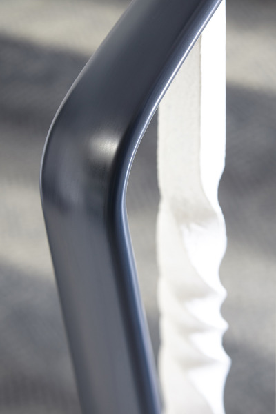 Der Stahlträger wurde mit schwarzem Kunststoffhandlauf überzogen. |