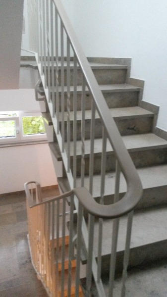 In diesem Mehrfamilienwohnhaus wurden die alten Geländer von einer 77cm auf 97cm erhöht. Der alte Handlauf wurde erhalten. |