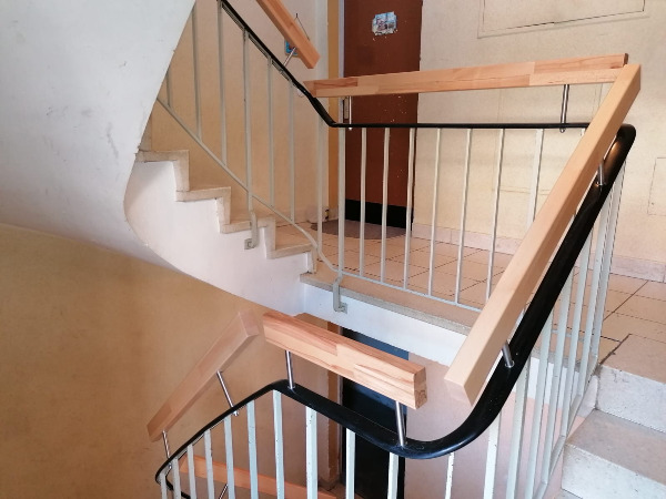 In diesem Mehrfamilienhaus wurde der Handlauf aus Kunststoff neu montiert. Es wurde das Treppengeländer und das Geländer vor dem Fensterelement neu belgt.